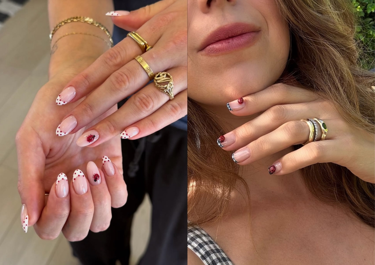 Šį sezoną vienas madingiausių – taškuotas prancūziškas manikiūras, paįvairintas pavienėmis raudonomis boružėlėmis. Klasikiniam „prancūzui“ būdingi balti nagų galiukai pakeičiami margintais spalvotais arba juodais taškeliais, o ant vieno nago sumodeliuojama iškili boružėlė, tarsi ropojanti nago plokštele.