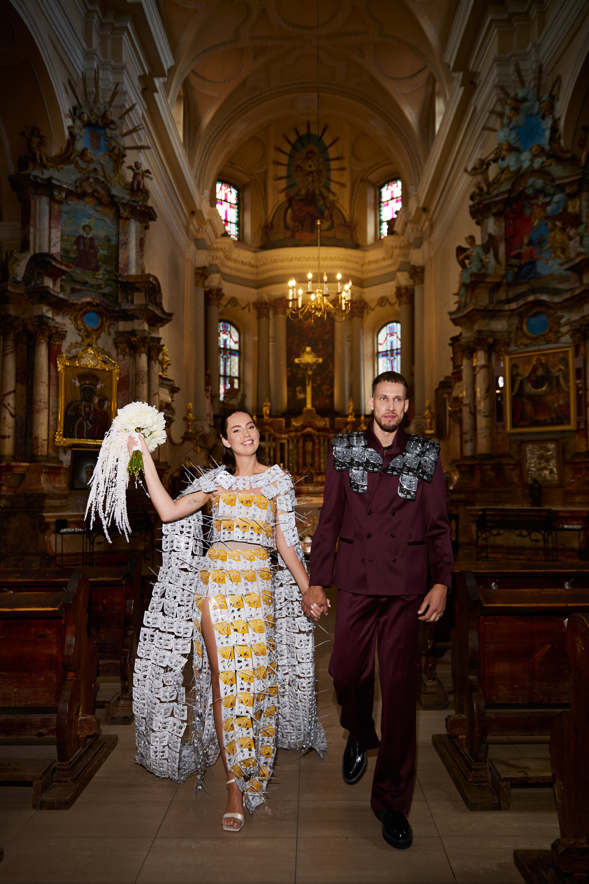 Na, o vienas iš šių kūrinių peržengė podiumo ribas. Iš surinktų pakuočių sukurta vestuvinė suknelė tapo tikrų vestuvių dalimi – ją vilkėdama nuotaka ištarė svarbiausią gyvenimo „taip“, tokiu būdu simboliškai sujungdama tvarius santykius ir tvarų požiūrį į aplinką. Ši istorija tapo gyvu įrodymu, kad tvarus menas gali būti ne tik konceptualus, bet ir prasmingai integruotas į žmonių gyvenimus.