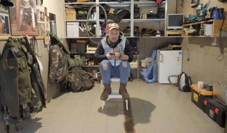 „Oho. Čia kaip kokioje Vokietijoje! Negaliu patikėti, kad tu turi tiek daug įrankių, ir juos esi taip gražiai visur susikabinęs“, – stebėsis A. Bružas.