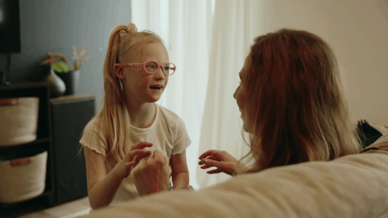 „Iki darželio, ji dažnai springdavo nuo skysto maisto. Tačiau, kai mes nuėjome į darželį ir ji pamatė, kad kiti vaikai valgo sriubą, ji pradėjo tą sriubą valgyti ir pati, nespringdama. Aišku, būdavo tų situacijų, bet vis tiek buvo jausmas, kad mano vaikas – kaip ir visi. Ir tos visos šventės darželyje… Ar aš galėjau patikėti, kad mano vaikas, tas, kuriam žadėjo, kad jis gulės ir nieko nedarys, eina į darželį, jį priima vaikai, mes dainuojame, kartu žaidžiame? Visi tie įvykiai darželyje man palieka ryškų įspūdį“, – susigraudinusi kalba mama.