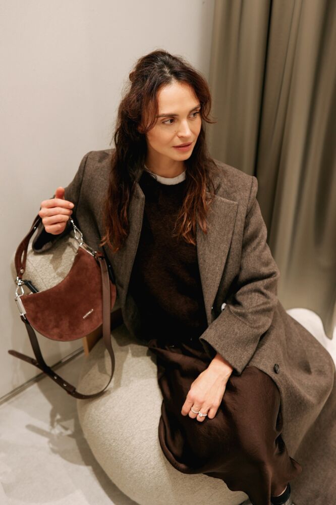 „Nevilkiu nieko su kniedėmis ar odiniais elementais. Turiu odines kelnes, bet jas priskirčiau prie klasikinio, o ne pankroko stiliaus. Taip pat atsargiai vertinu šį sezoną madingą blizgesį – nuo metalizuotų audinių iki žvilgančių detalių, siūlomų ne tik vakarui, bet ir dienos įvaizdžiams. Man blizgučiai vis dar asocijuojasi su švente“, – sako ji.