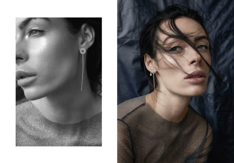 Asketiškus papuošalus dizainerė siūlo segėti ar nešioti po kelis – atkartodami vienas kito formas jie atsiskleidžia visu grožiu. Būtent taip papuošalai buvo įamžinti ir šios kolekcijos fotosesijoje, kurios veidu tapo išraiškingų bruožų tapytoja Gia Ram.