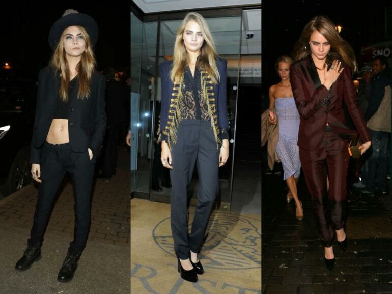Kelnių kostiumą pavasario ir rudens sezonui pasiūlė garsiausi mados namai: „Saint Laurent“, „Armani“, „Ralph Lauren“, „Marc Jacobs“ bei kiti. Ne vienų kolekcijas ant podiumo pristatė patrakusi Cara, ši tendencija prigijo ir pačiai. C. Delevingne vis dažniau pamėgtus sportinius drabužius iškeičia į solidų kostiumą. Tiesa, prie jo derina ne tik klasikinius aukštakulnius ar marškinius (kaip įprasta), bet ir rokeriškus aulinukus bei trumpas palaidines.