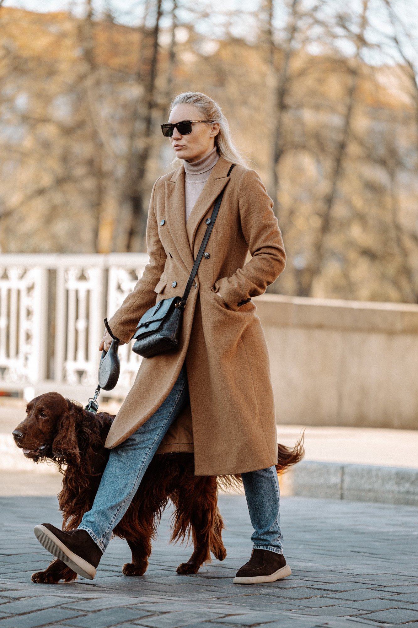Ruda talpi rankinė prie šviesaus derinio atrodo ir praktiškai, ir estetiškai. Juoda nedidelė rankinė prie rusvo palto įvaizdžiui suteikia tvarkos. Tamsūs akiniai nuo saulės keliuose deriniuose įneša miestietiško pasitikėjimo, o skara ar šalikas iškart padaro aprangą jaukesnę.