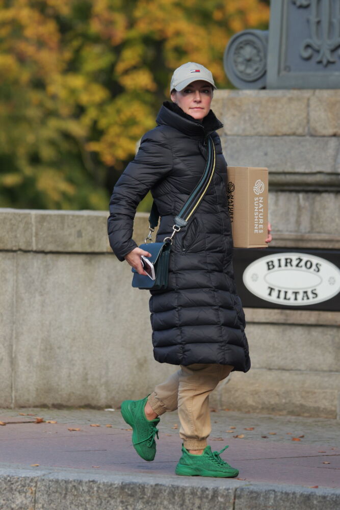 Praktiška, bet stilinga – juoda ilga pūkinė striukė puikiai dera prie ryškiai žalių sportbačių ir smėlio spalvos laisvalaikio kelnių. Sportinis ir miesto stiliai susitinka, kai derinamos patogios detalės su ryškiais aksesuarais.