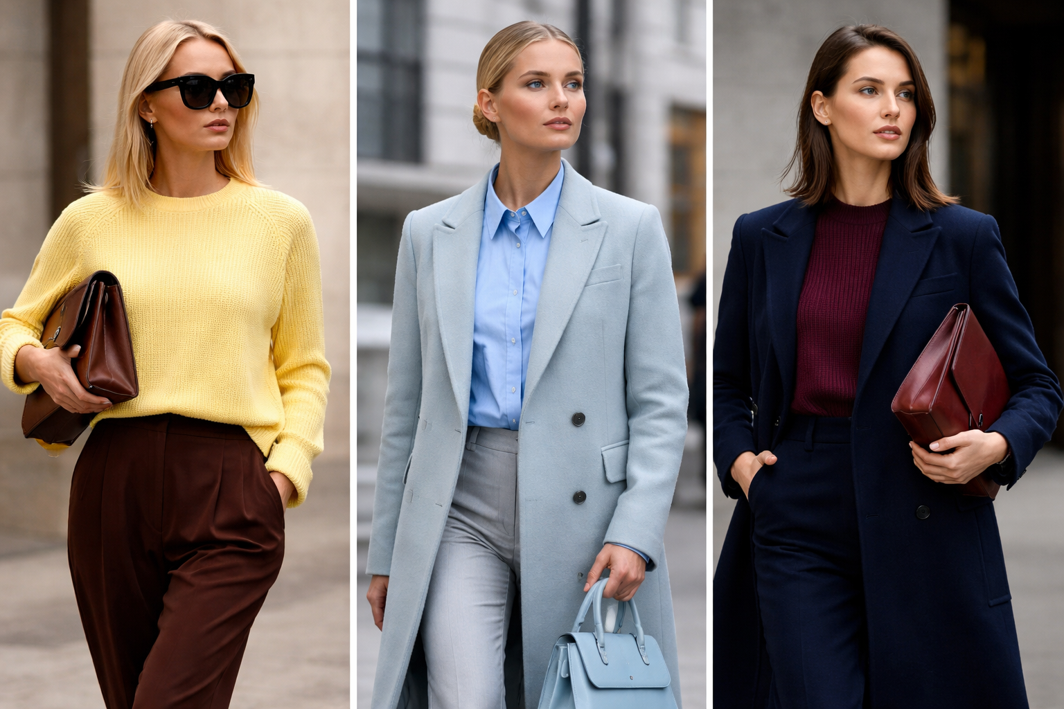 Šį sezoną mados kryptys rodo, kad prabanga vis dažniau siejama ne su blizgesiu ar logotipais, o su santūrumu, aiškumu ir spalvų balansu. Būtent todėl sviesto geltona su ruda, ledinė melsva su pilkais tonais ir oksbordinė su tamsiai mėlyna ar juoda atrodo taip stipriai.