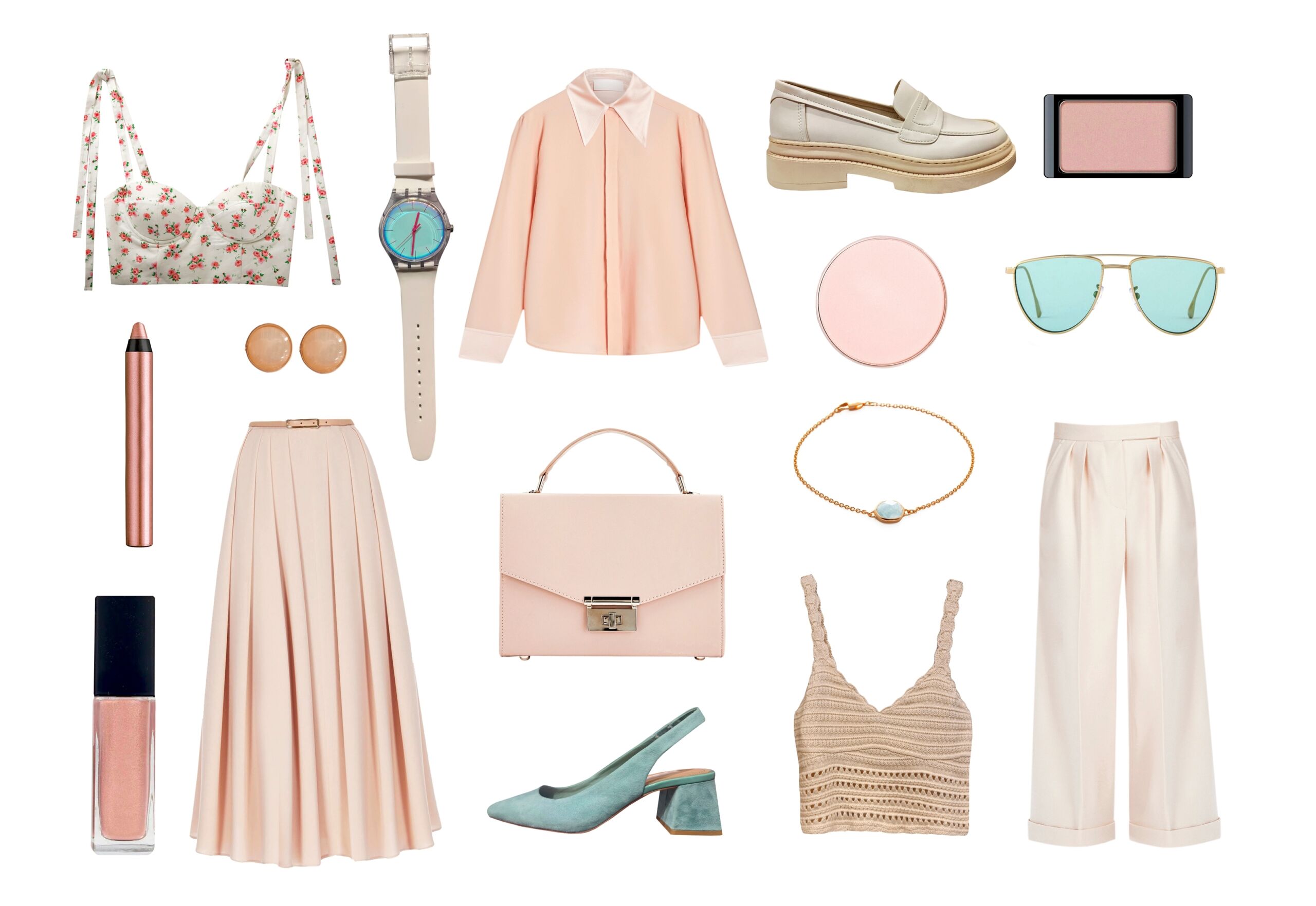 Jei visa kapsulė sudaryta iš šiltų tonų (karamelė, alyvuogių žalia, smėlio spalva), verta rinktis ne sniego baltumo, o šiltesnio atspalvio marškinėlius.
