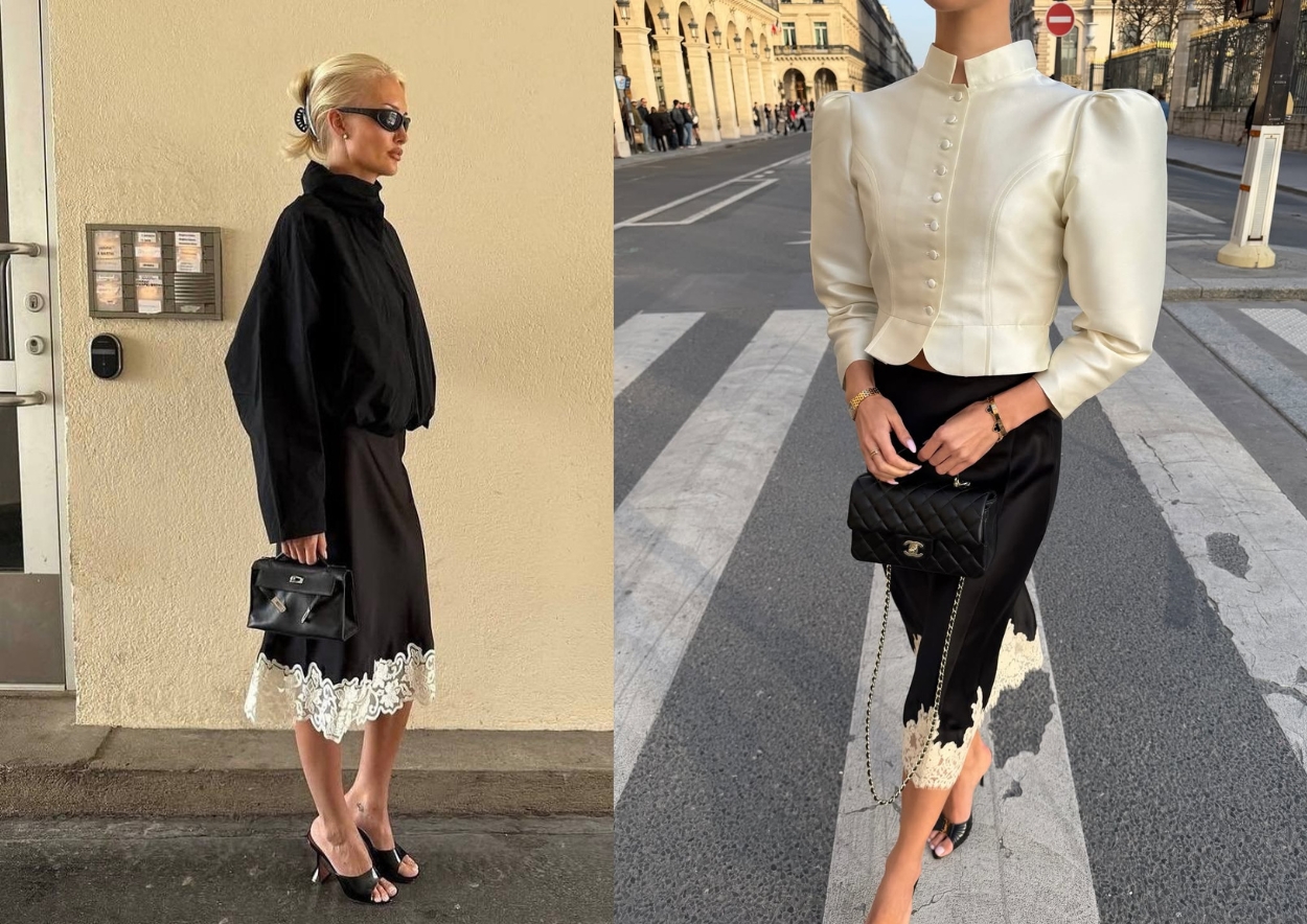 Švelnaus šilko ar satino ir nėrinių derinys kuria romantišką nuotaiką, toks sijonas atrodys kur kas puošniau nei džinsinis ar odinis. Net ir kasdienį derinį jis pavers jausmingesniu ir moteriškesniu. Šį sezoną madingi tiesesnio kirpimo arba švelnaus A silueto sijonai, dekoruoti nėrinių juostomis. Sparčiai kylanti tendencija – asimetriškas apačios kraštas, tarsi nukirptas kampu. Tokio tipo sijonus išvysite ne tik 2026 m. pavasario, bet ir rudens kolekcijose, todėl vasarai pasibaigus neslėpkite jų spintos gilumoje.
