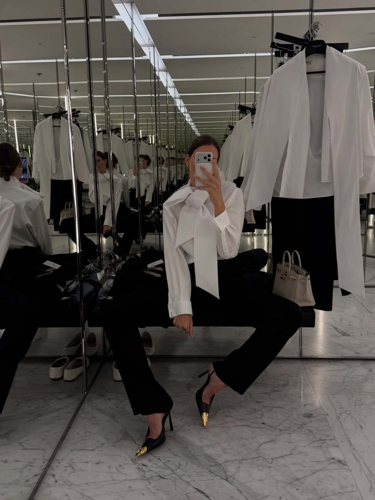 Išskirtinio dėmesio sulaukusi palaidinė pristatyta „Saint Laurent“ 2026 m. pavasario ir vasaros kolekcijoje. Ji pasiūta iš standesnės baltos medvilnės, primena klasikinius marškinius, tačiau vietoje griežtos apykaklės palaidinę puošia didelis baltas vienos kilpos kaspinas.