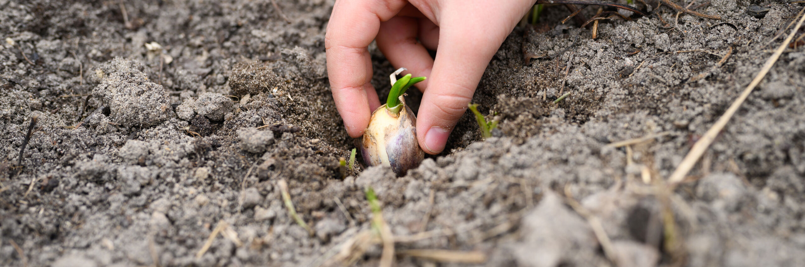 - Svogūnus sodinkite apie 5 cm gylio eilėse, tarp augalų palikdami 8–10 cm.