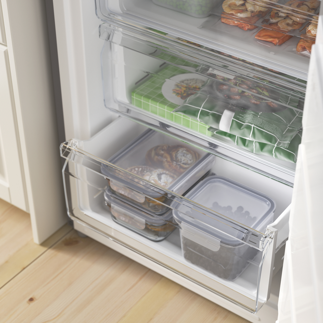 Skaidrus indelis – aiškus turinys. „Patiekalų likučius geriausia užšaldyti skaidriuose indeliuose, vos jiems atvėsus, o ne palikti puode ar keptuvėje – bus lengviau sudėti į šaldiklį ir atsiminti, kas viduje. O jei šaldote daržoves, prieš tai jas trumpai apvirkite – tai padės išsaugoti jų tekstūrą ir maistingąsias medžiagas, be to, pratęs tinkamumo vartoti laiką“, – sako IKEA Maitinimo paslaugų skyriaus vadovas.