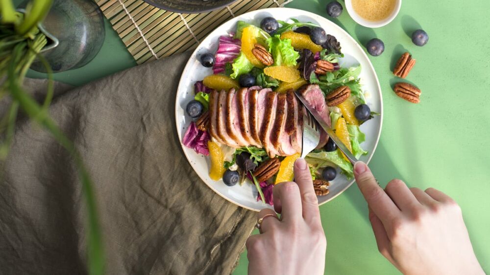 Kad įsitikintumėte, kaip nesudėtingai galima paruošti išskirtinį patiekalą su antiena, „Rimi“ siūlo išbandyti šį paprastą salotų su antiena receptą.