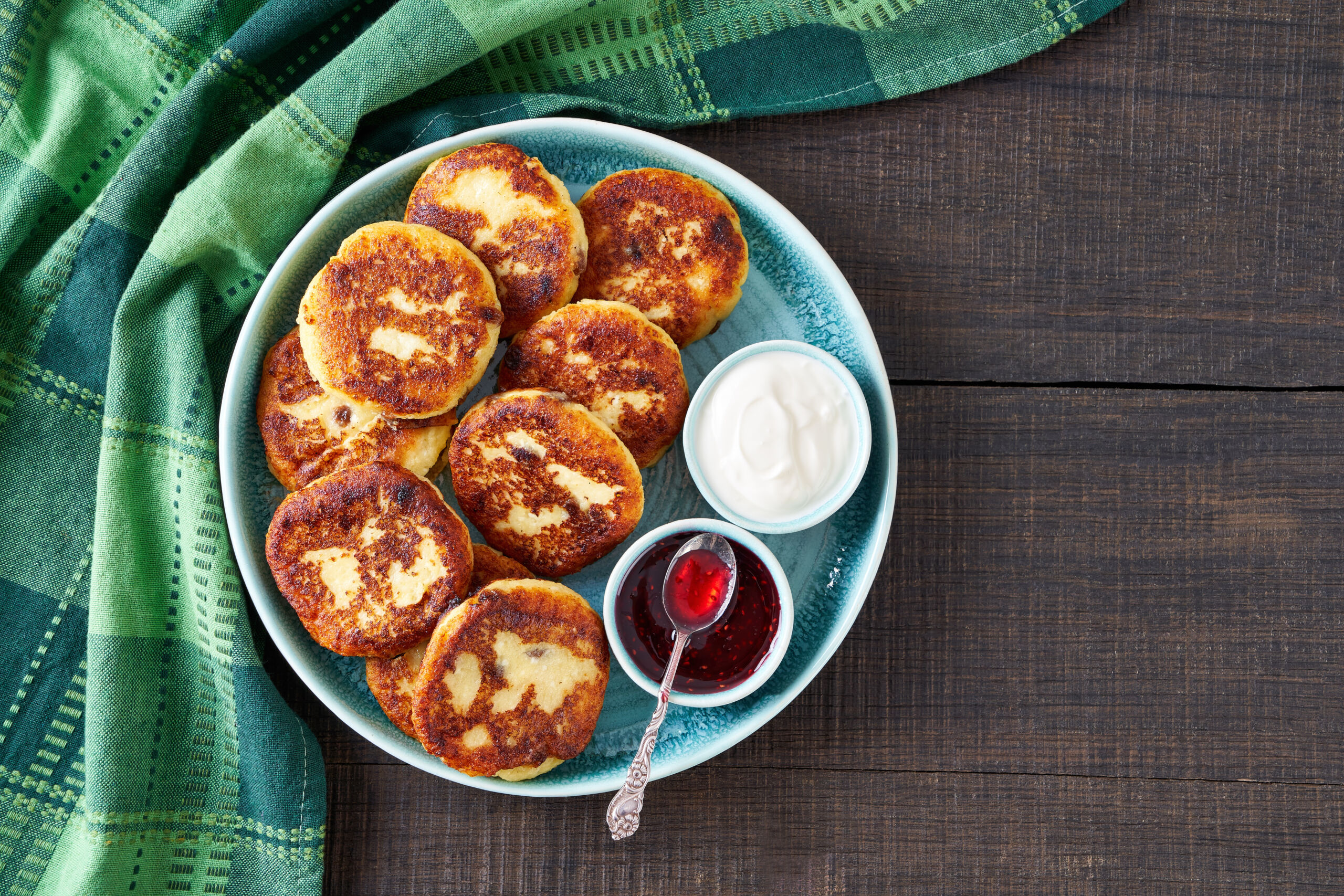 - Kepkite ant vidutinės ugnies, iš abiejų pusių, kol varškėčiai gražiai apskrus ir taps auksinės spalvos.