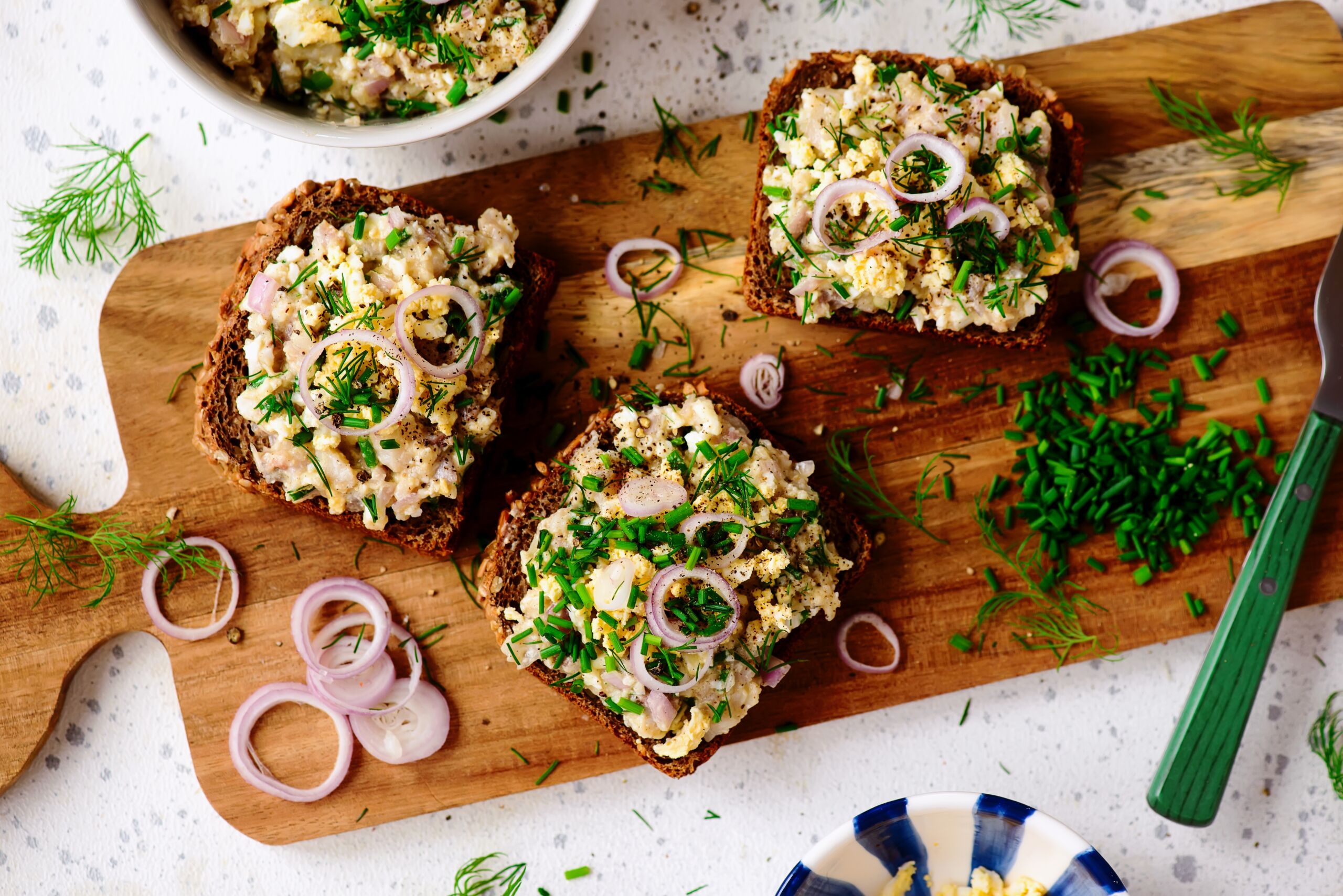 - Puikiai dera su šviežiais krapais, svogūnų laiškais ar marinuotais agurkėliais.
