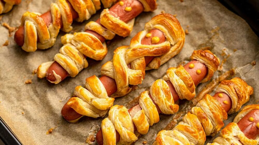 Tai klasikinis, vaikų mėgstamas užkandis, kur dešrelės apvyniojamos sluoksniuotos tešlos juostelėmis, primenančiomis mumijos tvarsčius. Iškeptos jos atrodo ne tik žaismingai, bet ir gardžiai.