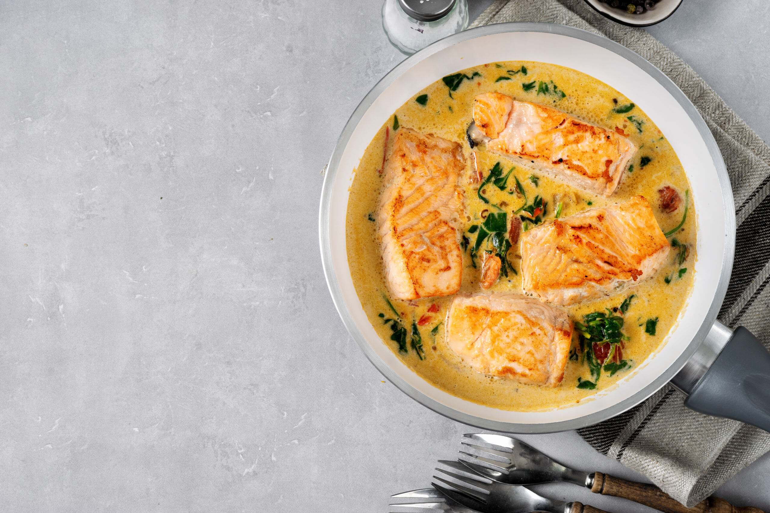 Lašiša su grietinėle – tai klasikinis derinys, vertinamas dėl savo švelnaus skonio, sodrumo ir paprasto paruošimo. Šis patiekalas puikiai tiks, kai norisi kažko ypatingesnio, bet be sudėtingų gaminimo etapų. Kreminis padažas išryškina lašišos skonį ir išlaiko žuvį sultingą.