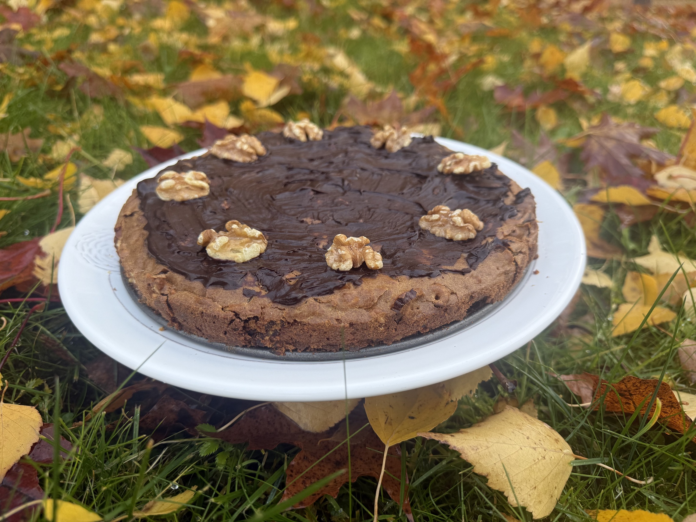 - Apliekite garų vonelėje ištirpintu šokoladu ir papuoškite graikiniais riešutais.