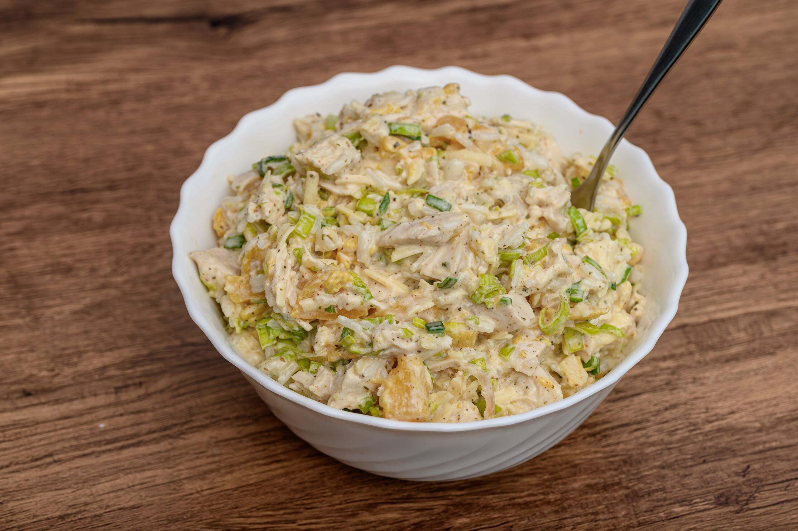 Šių salotų privalumas tas, kad jos yra labai lengvai pritaikomos pagal turimus ingredientus. Vieni mėgsta jas gaminti su kukurūzais, kiti papildo agurkais, kiaušiniais ar sūriu. Tačiau pats pagrindas išlieka tas pats – purūs ryžiai, aromatinga rūkyta vištiena ir kreminis, viską sujungiantis padažas.