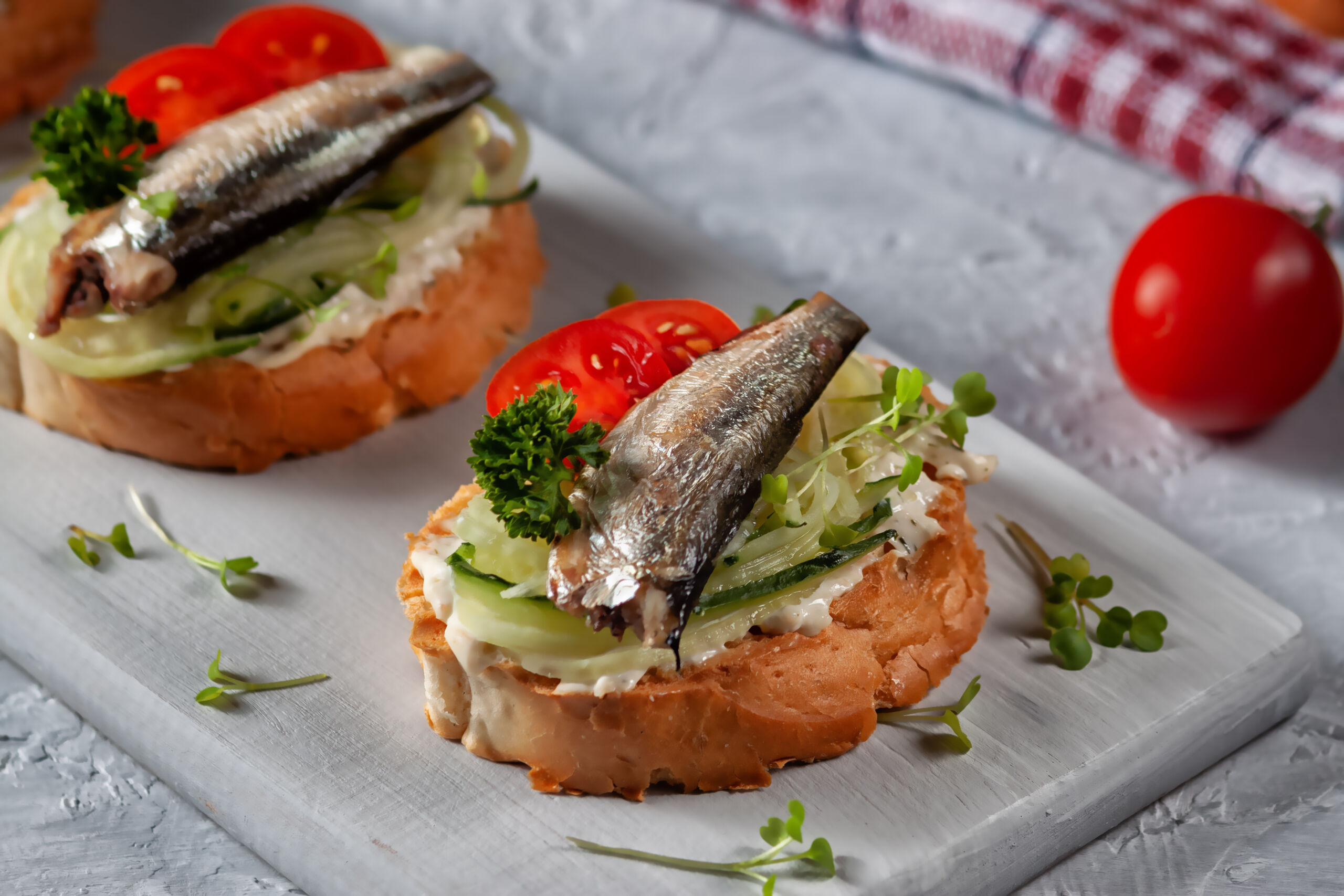Klasikiniai sumuštiniai su šprotais ir kiaušiniu