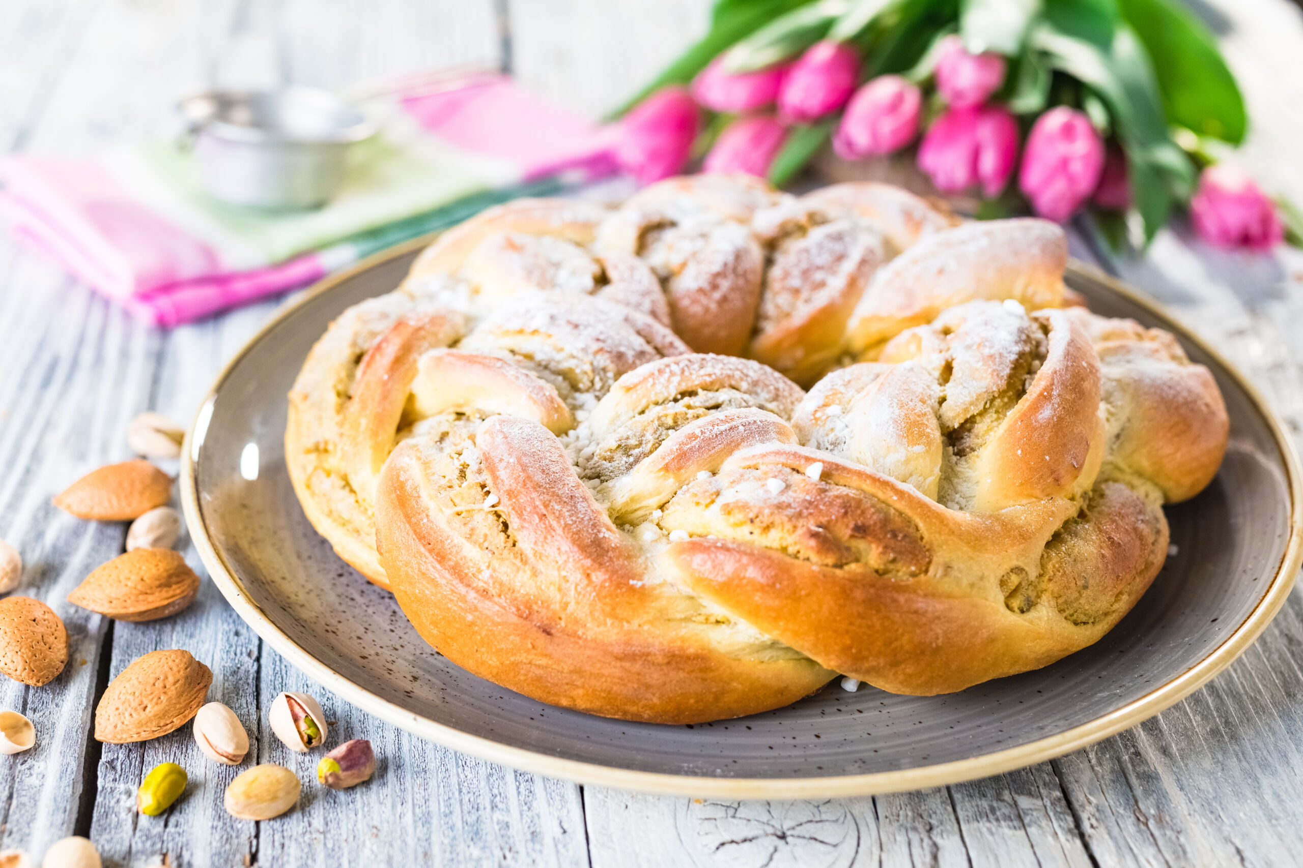 Velykų stalui puikiai tinka ir tradiciniai mieliniai kepiniai, kurie daugelyje šeimų siejasi su šventiniu laikotarpiu. Mielinė pynutė – vienas iš tokių kepinių: minkšta, puri ir lengvai dalijama, todėl idealiai tinka bendram šeimos stalui.